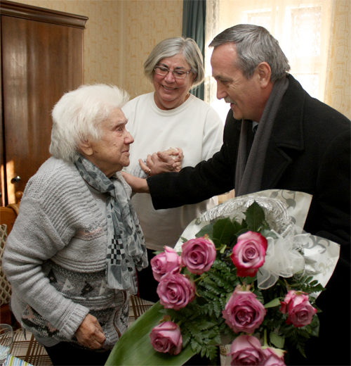 Szűcs Jánosné Nyíl utcai lakost köszöntötte 106. születésnapja alkalmából Debrecen önkormányzata 2015. január 5-én.
