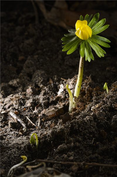 Virágzik a téltemető (Eranthis hyemalis) a debreceni Nagyerdőben 2015. január 30-án. MTI, fotó: Czeglédi Zsolt