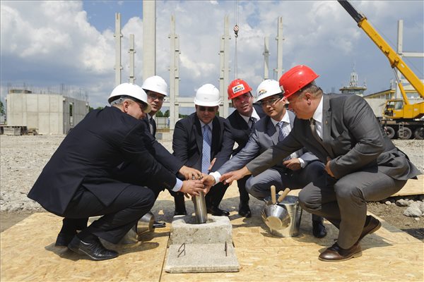 Herdon István, a Xanga csoport vezérigazgatója, Seszták Mikós nemzeti fejlesztési miniszter, Kósa Lajos országgyűlési képviselő, Váradi József, a Wizz Air légitársaság elnök-vezérigazgatója, Papp László polgármester és Győri Gyula, a Nemzeti Közlekedési Hatóság elnöke (b-j) leteszi az innovációs és inkubációs központ alapkövét a debreceni repülőtéren 2015. június 11-én. A kormány kiemelt projektként kezeli a debreceni nemzetközi repülőtér fejlesztését, így a több mint 1,34 milliárd forint európai uniós és magyar központi költségvetési támogatásból megvalósuló beruházást is. MTI, fotó: Czeglédi Zsolt