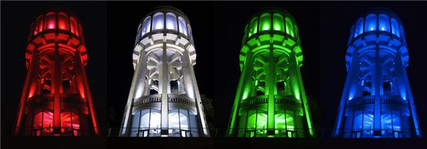 Fényjátékkal “feleselhet” egymásnak ezentúl a tavaly átadott új debreceni Nagyerdei Stadion és a szomszédságában lévő, monarchiabeli, most teljesen megújult víztorony: az ipartörténeti emléket ugyanis – a stadionhoz hasonlóan – tetszőleges színűre változtathatja a felszerelt 72 színező lámpa és a mintegy 1500 nagyteljesítményű led izzó.