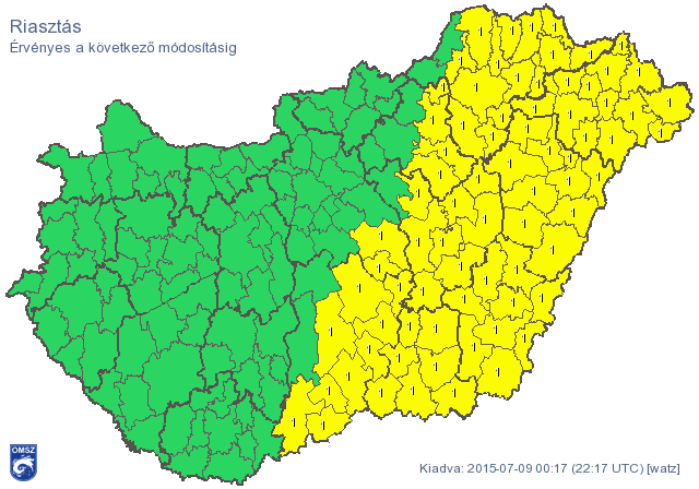 Mind az öt érintett járásban visszavonta a második fokozatú riasztást a meteorológiai szolgálat. Szerdán este Hajdú-Bihar megye teljes térségében első fokú riasztás van érvényben.