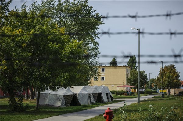 Üresen álló, ideiglenesen felállított sátrak a Bevándorlási és Állampolgársági Hivatal debreceni befogadó állomásának udvarán 2015. szeptember 17-én. A közelmúltban még csaknem kétezren lakták a tábort, mostanra azonban már csak közel háromszázan maradtak, főleg afrikaiak.