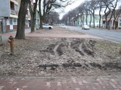 A nyugati kiskörút továbbépítése során alakítottak ki nemrégiben új zöldterületet és öntözőrendszert a Miklós utcán. A városüzemeltetési osztályvezető szerint az autósok tönkretették a füvet és az öntözőrendszert azzal, hogy a tiltás ellenére parkolónak használják a zöld szakaszokat.