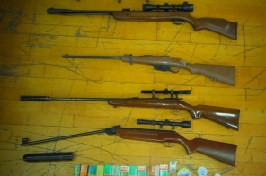 A nyomozók átvizsgálták a pincét és a garázst is, ahol egy működésképtelen, de nem hatástalanított antik karabélyt, két légfegyvert, egy házilag készített hangtompítót és egy 0,22-es kaliberű puskát, valamint egy hűtőszekrényben több száz lőszert is találtak. A nyomozók összesen 853 darab 0,22-es kaliberű lőszert, valamint 1746 darab különféle méretű lőszert, továbbá a fegyvereket lefoglalták.
