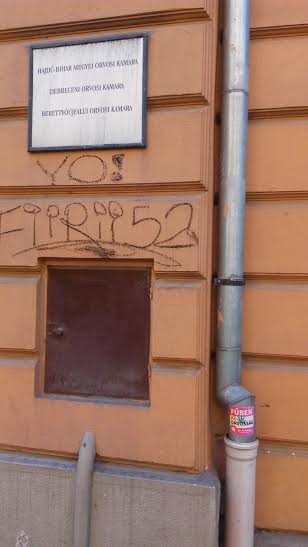 A Hajdú-Bihar Megyei Orvosi Kamara épületén díszeleg a képen látható matrica. Ki-ki a maga csodaszerére esküszik.