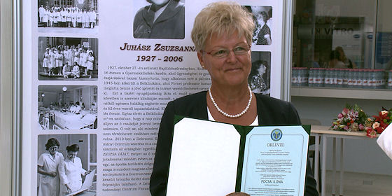 A konferencia előtt kiosztották a Juhász Zsuzsa Emlékdíjat. A kitüntetés egyfajta Életműdíj, amit a Klinikai Központ Ápolási Bizottsága ítél oda a legkiemelkedőbb munkát végző szakdolgozóknak. Idén Pocsai Ilona vehette át az elismerést, aki 40 éven át dolgozott a klinikán, 1986-tól pedig a Szívsebészeti Klinika osztályvezető ápolónője volt. A főnővér beszédében köszönetet mondott kollégáinak, de üzent a fiataloknak is.