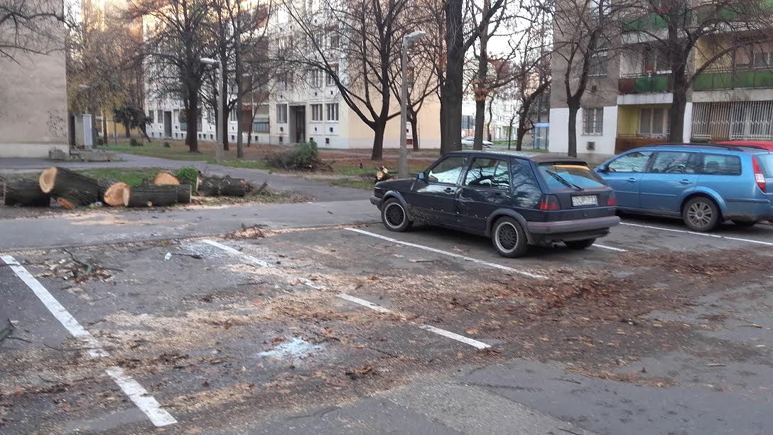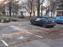 Több személygépkocsiban is kárt tett az a nagy fa, amelyik a viharos szél hatására kidőlt az Erzsébet utca felé vezető úgynevezett Névtelen utcán.