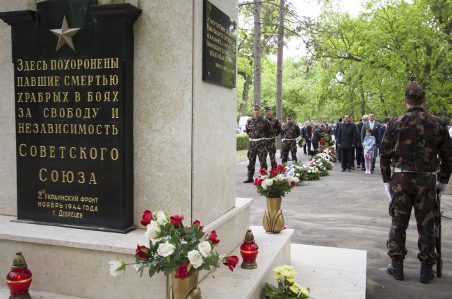 A II. világháború európai hadszínterein zajló harcok befejezésének 72. évfordulója alkalmából Debrecen önkormányzata koszorúzásokat tartott 2017. május 9-én.