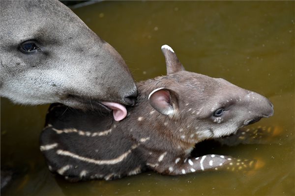 Tapír született vasárnap a debreceni állatkertben, az állatot szerdától láthatja a közönség – közölte Nagy Gergely Sándor, a nagyerdei kultúrpark igazgatója szerdán, az állatkert tapírházában tartott sajtótájékoztatón.Elmondása szerint 13 hónapi vemhesség után született meg a nőstény tapír, az állatkert tapírpárjának harmadik utóda.