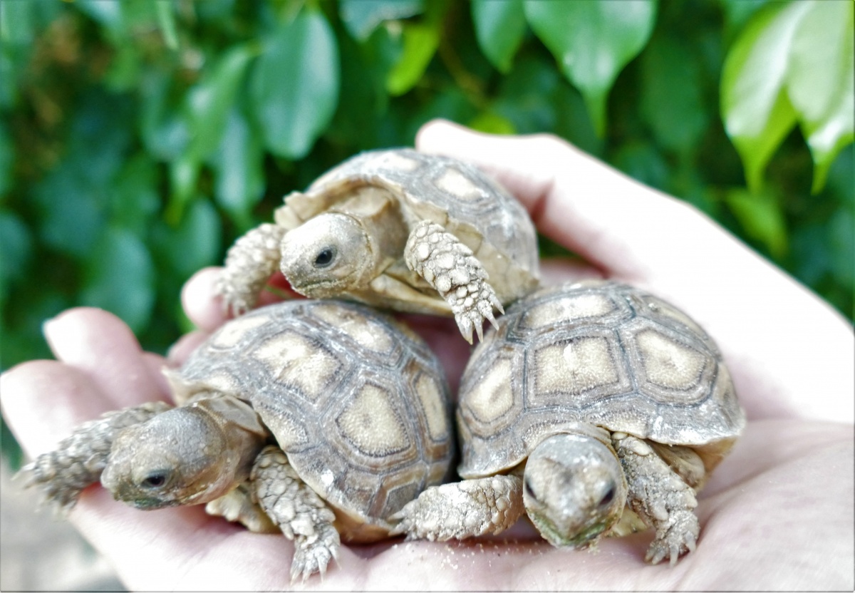 Az első kis teknős május 8-án bújt ki a tojásból, két testvére pedig a következő napon követte példáját. Ők az első saját nevelésű sarkantyús teknősök (Geochelone sulcata), akik az állatkertben látták meg a napvilágot.