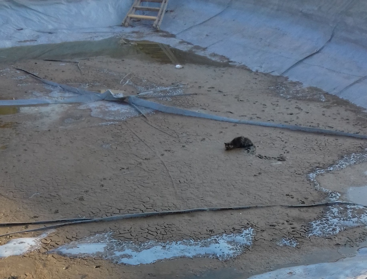 A város hivatásos tűzoltóit riasztották a helyszínre, mert a cica nem tudott kiszabadulni egyedül. A tárolóban víz nem volt, viszont iszap igen, amibe a macska beleragadt. A tűzoltók kézierővel kiszabadították az állatot, aki az eset után sértetlenül hazaszaladt.