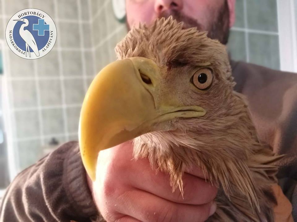 Vadászok találták szombaton Prügy mellett ezt az idős rétisast. Egy bokorban felakadva vergődött, sebeit nézve több napja. Bal sarka kificamodott, lábfeje kétszeresére dagadt – számolt be az esetről az alapítvány.