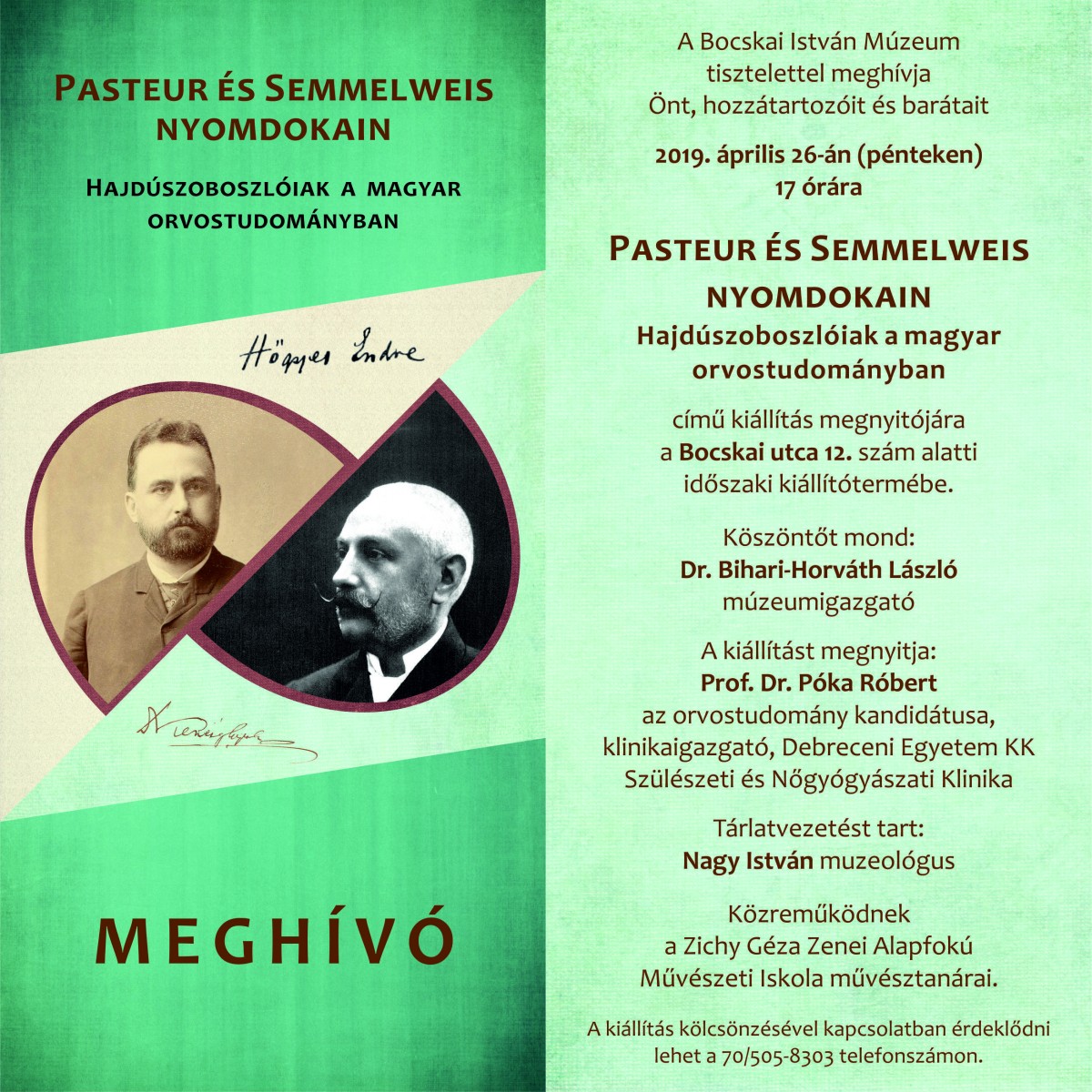 „Pasteur és Semmelweis nyomdokain, Hajdúszoboszlóiak a magyar orvostudományban” címmel nyit meg kiállítást Póka Róbert klinikaigazgató (DEKK Szülészeti és Nőgyógyászati Klinika)április 26-án, pénteken 17 órakor Hajdúszoboszlón.