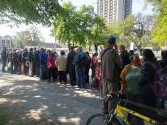 A hosszú sorban láthattunk hajléktalanokat, kisnyugdíjasokat, kisgyermekes családokat, egykor szebb napokat látott közmunkásokat, akik türelmesen várták, hogy sorra kerüljenek. A hangulat nem volt vidám, hiszen saját nyomorával senki sem szeret dicsekedni. Szomorú szemű, megfáradt emberek, arcukon a kilátástalanság. Legtöbbjüknek esélye sincs arra, hogy kilábaljon jelenlegi helyzetéből, és emberhez méltó módon éljenek. Nagyon sokan ételhordóval jöttek, otthon maradt családtagjaiknak vitték az ebédet. Volt olyan család, akik hat főre vittek haza ételt.