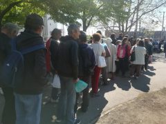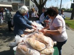 Már az ételosztás kezdete előtt egy órával legalább hatvanan várták türelmesen, hogy ebédhez jussanak. A déli harangszóig folyamatosan érkeztek az emberek, nagyon sokan kisgyermekkel. A nap végére mintegy 200 felnőtt és 30 gyerkőc lakhatott jól a húsvéti finomságokból. Ebben az évben még nem várták ilyen sokan, hogy ebédhez jussanak. Látszik, hogy a négynapos munkaszünet alatt a szociális ellátórendszer szünetel, a nincstelenek csak a jótékonysági osztásokon juthatnak ilyenkor ételhez.