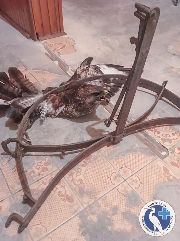 Legutóbb egy barna rétihéja mindkét lábát Orosházán, most a Csepel-szigeten egy egerészölyv mindkét szárnyának összes alkarcsontját törte szilánkosra egy rókák és sakálok ellen kihelyezett csapda.