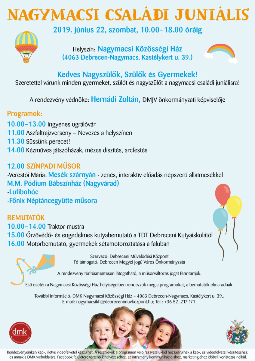 Családi juniális lesz Nagymacson Helyi hírek június 20, 2019június 24, 2019Szabolcs SzilágyiSzóljon hozzá a Családi juniális lesz Nagymacson bejegyzéshez Június 22., 10.00-18.00 Nézd meg Debrecen legjobb ár/érték arányú ingatlanjait Kiadó és eladó lakások egy helyen – Írisz Ingatlan Megnézem az ajánlatokat → NAGYMACSI CSALÁDI JUNIÁLIS Helyszín: Nagymacsi Közösségi Ház Tetszett? Oszd meg másokkal is!