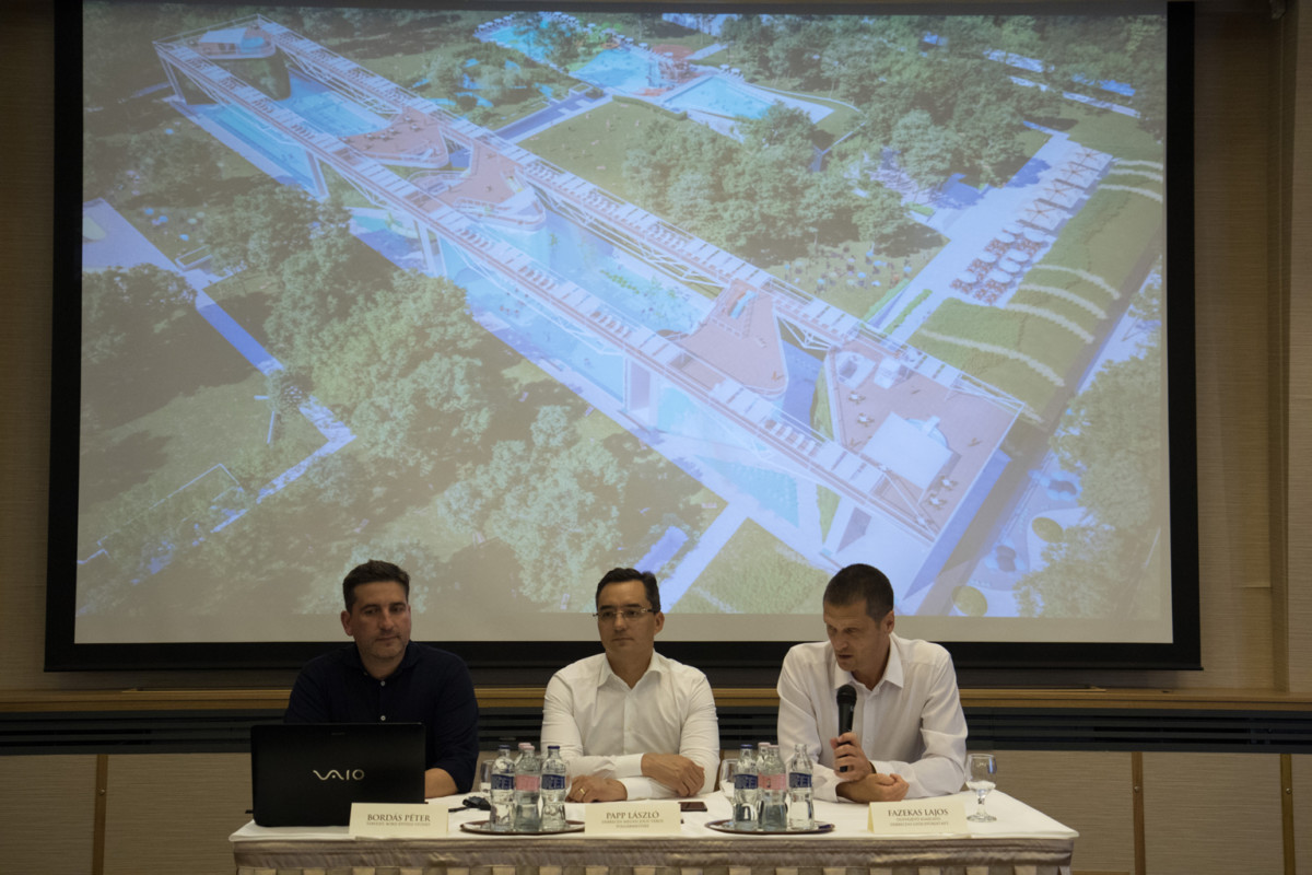 Jó ütemben halad a nagyerdei strand építése, a főépület elérte legmagasabb pontját. Elkészültek az élményelemek tervei, amelyet sajtónyilvános bejáráson mutatott be Papp László polgármester 2019. június 25-én.