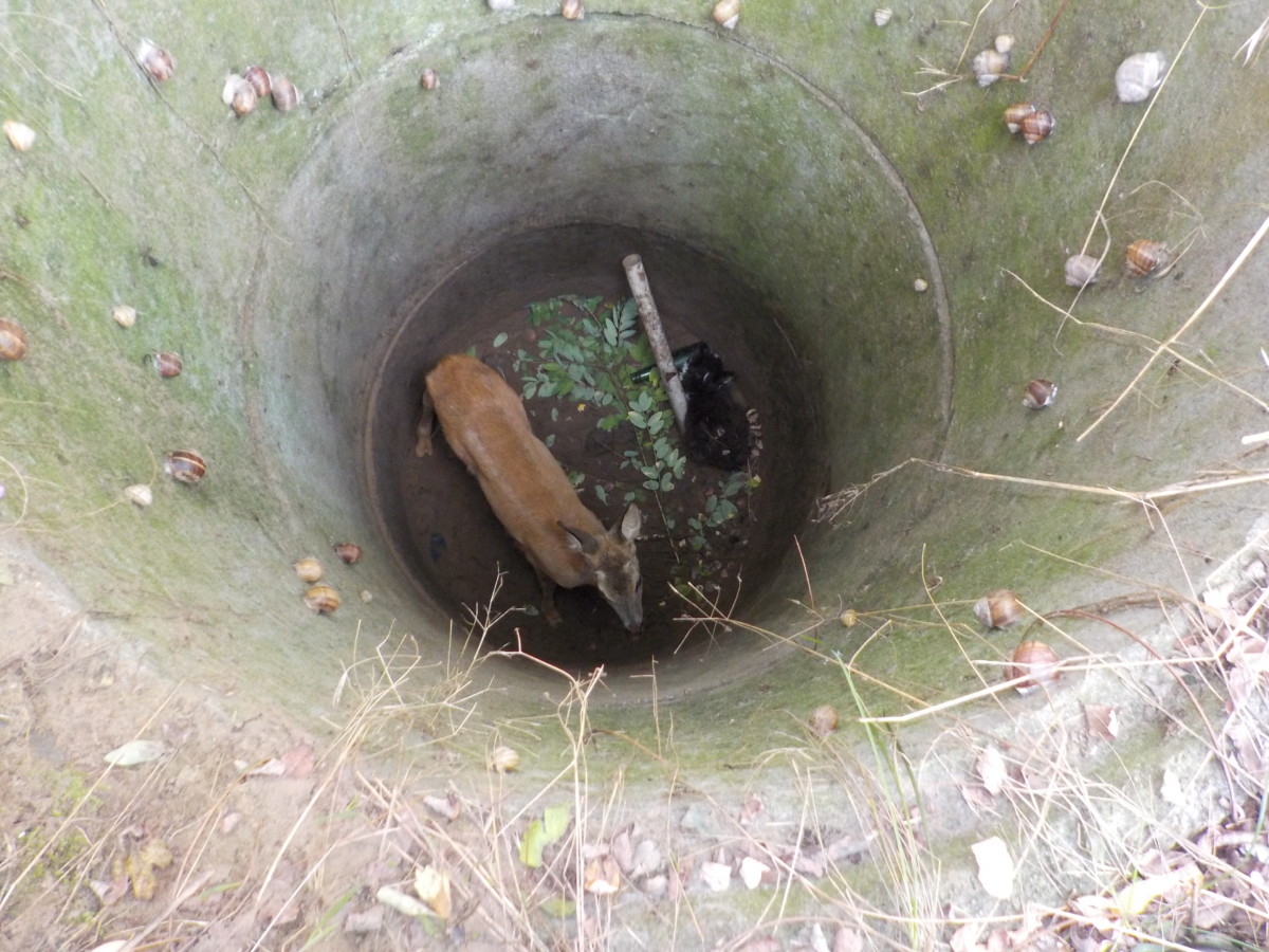 A hajdúsámsoni Mese utcában egy elhagyatott kútba esett kedd délelőtt egy őzgida és egy kismacska.