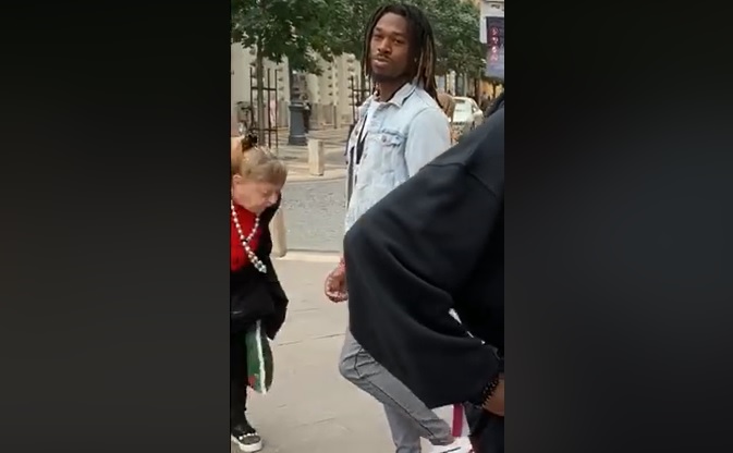 A videón az látható, hogy egy nő egy színes bőrű férfi lábára, vagy az elé köp. Igazából mindegy, hogy célt talál-e, a jelzés egyértelmű: nemkívánatos személybe botlott.