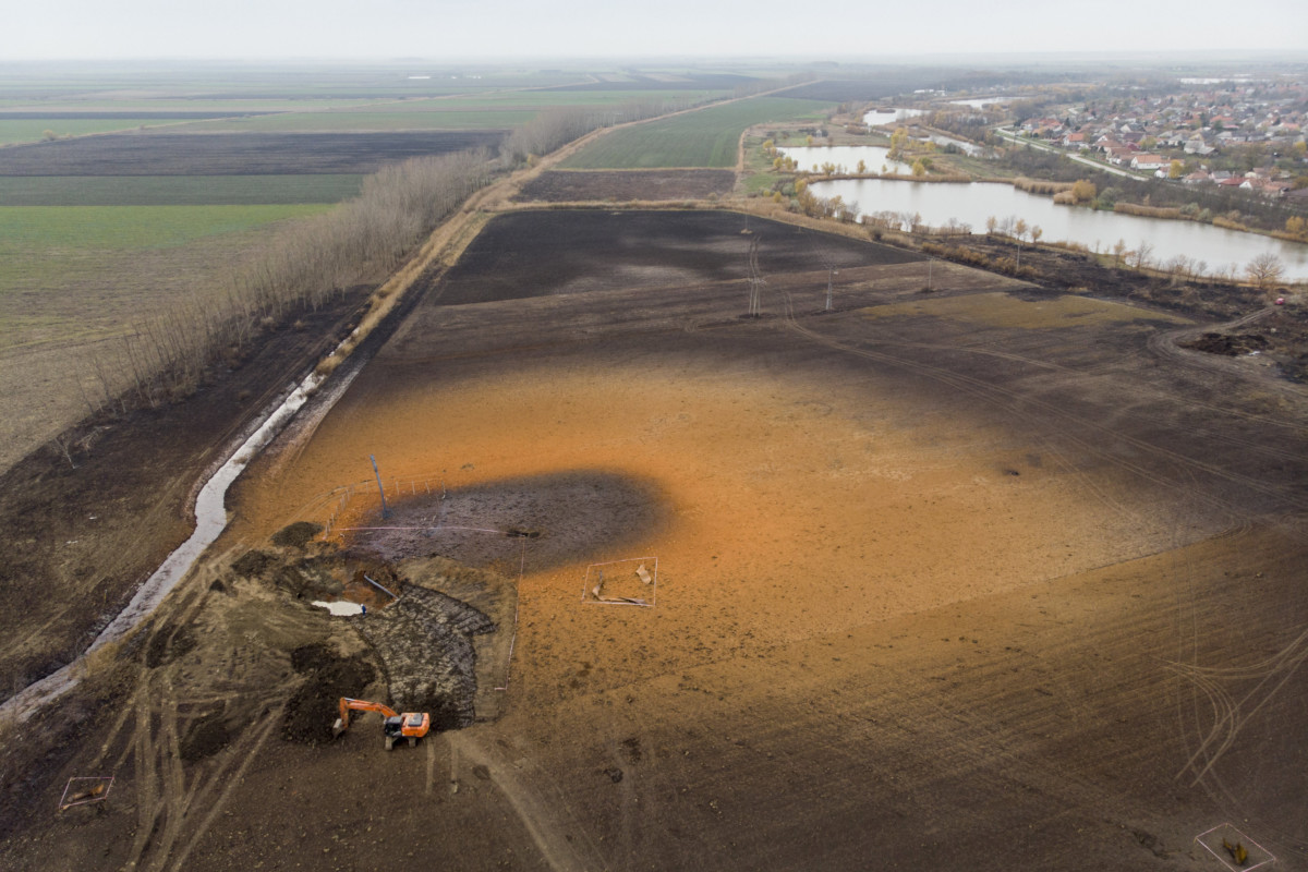 A november 18-án történt gázrobbanás helyszíne Püspökladány közelében 2019. november 20-án. A Hajdúszoboszló-Endrõd közötti 800 milliméteres átmérőjû, nagynyomású gázvezeték hasadt fel a gázfogadó állomáson, amelynek következtében a kiáramló gáz begyulladt.
