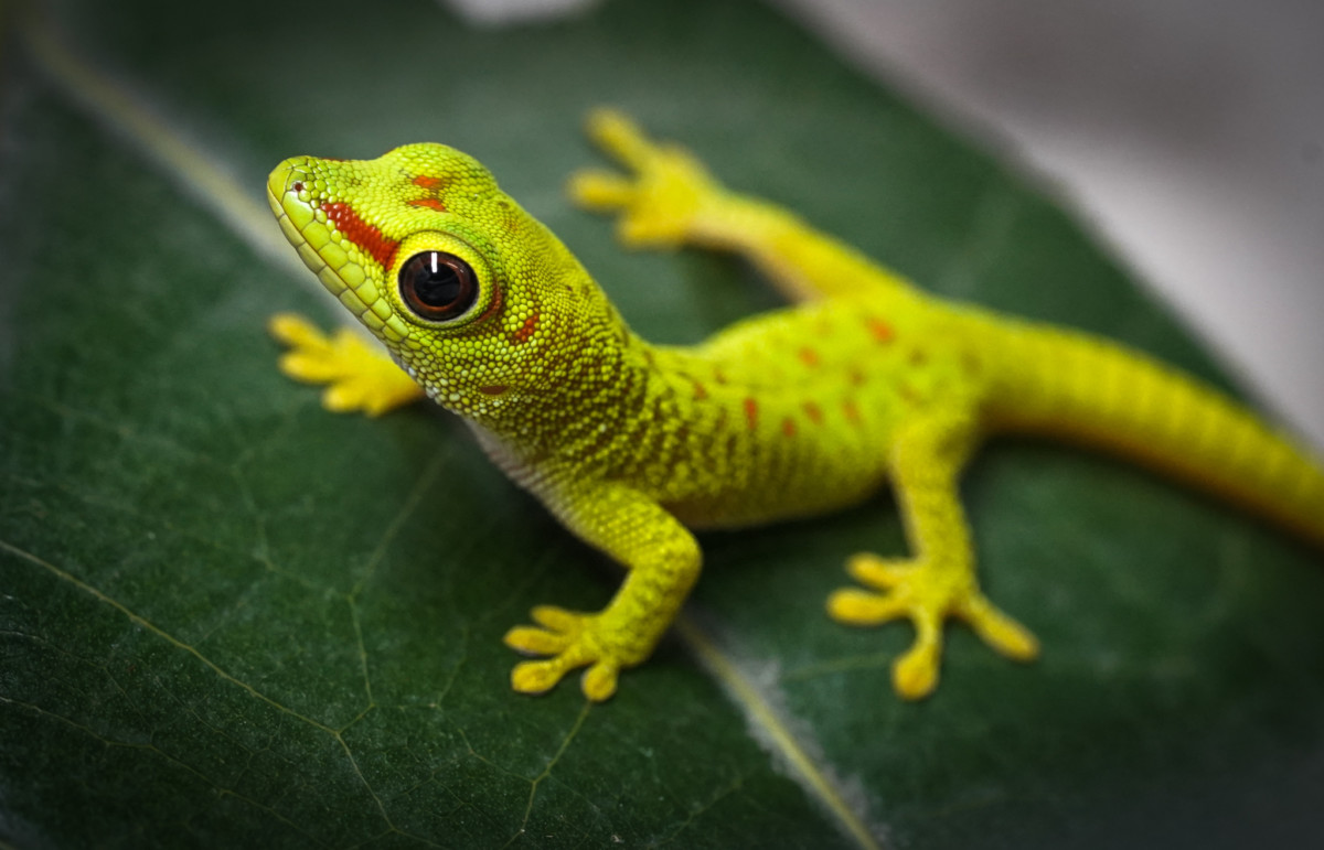 Az Észak-Madagaszkár erdőségeiben őshonos madagaszkári nappali gekkó (Phelsuma grandis) 30 cm-es testhosszával a legnagyobb nappaligekkó-faj. Mint neve is mutatja, főleg nap közben aktív; vegyes étrendjét rovarok és más gerinctelenek, illetve nektárok és gyümölcsök teszik ki. Érdekessége, hogy nincs szemhéja, szemét nyalogatással tisztítja.