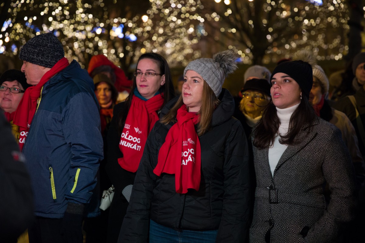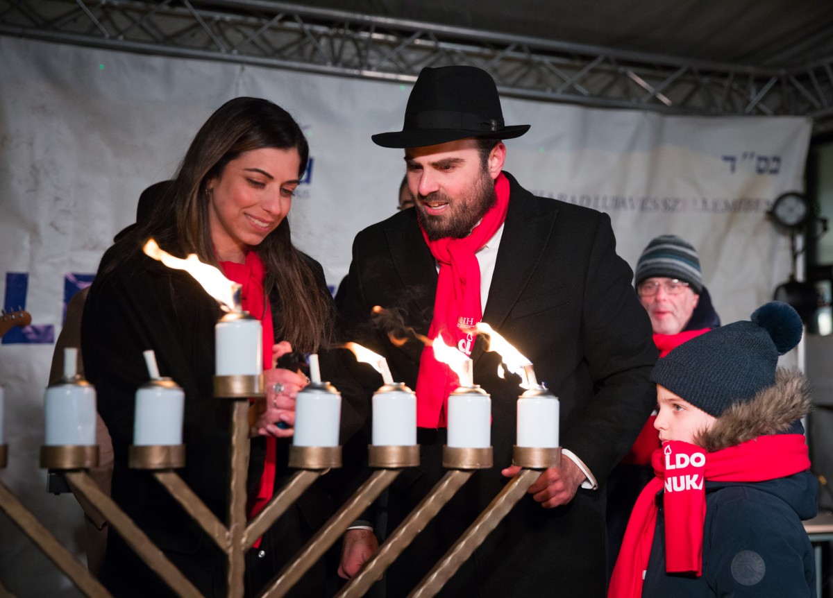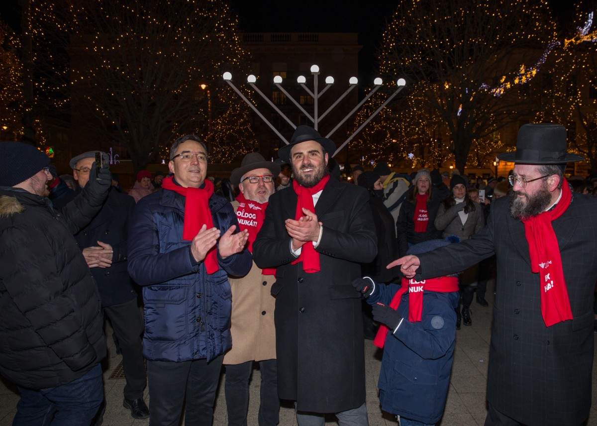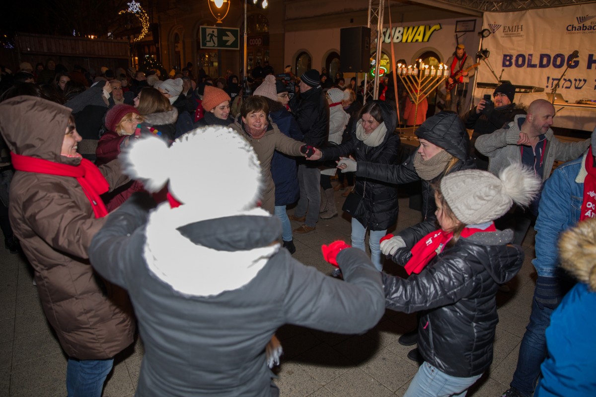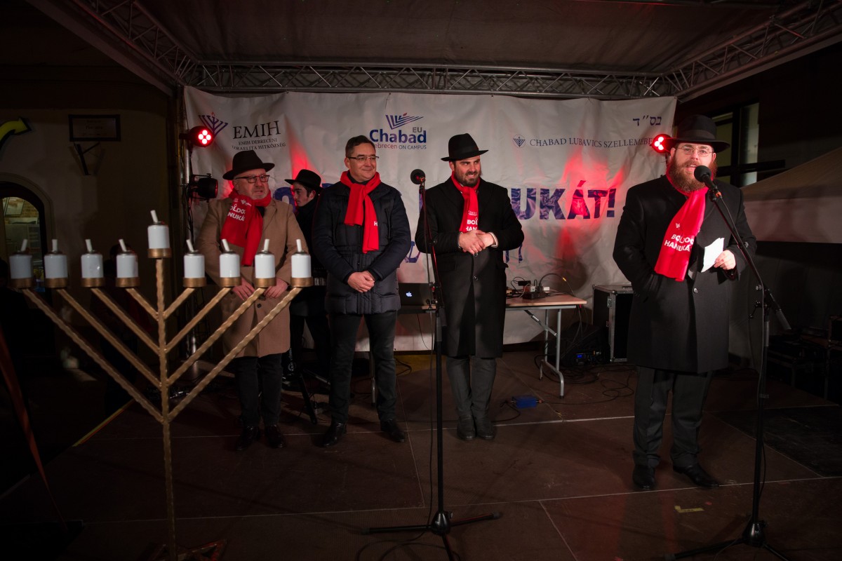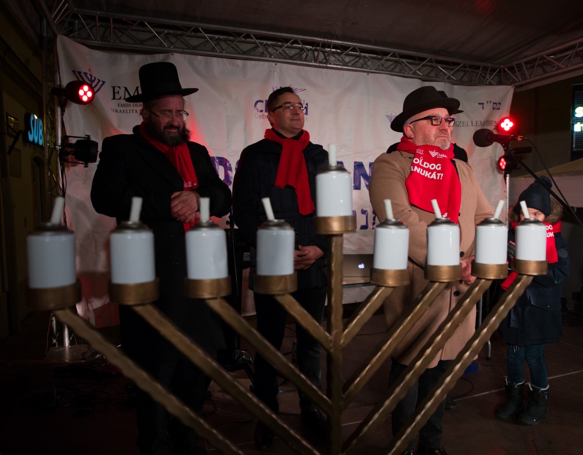 A Bajcsy-Zsilinszky utca Piac utcai torkolatánál felállított színpadnál egybegyűlteket az EMIH nevében Köves Slomó, a hitközség vezető rabbija köszöntötte. Szavai szerint hanuka minden napján a gyertyagyújtás alkalom arra, hogy tanuljunk valamit a fény különlegességéről. Miért is ünnep ez az időszak? Azért, mert kétezer évvel ezelőtt a zsidó makkabeus szabadságharcosok kis serege túlerőt legyőzve volt képes kivívni a zsidó nép szabadságát. De nem csak győzelmet arattak, henem megtisztították a jeruzsálemi Templomot a bálványoktól és meggyújtották a lángokat. Ezek a lángok csodálatos módon nyolc napon át égtek, pedig csak egy napra elegendő olaj volt.