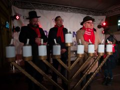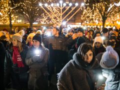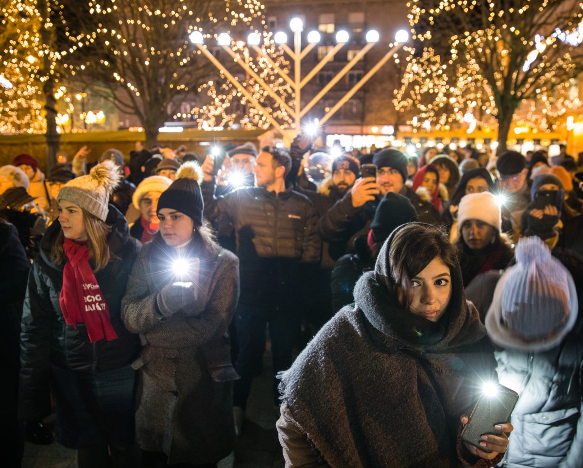 Ezt követően a rabbi minden jelen lévőt arra kért, hogy a mobiltelefonján kapcsolja be a fényeket, majd a hanukai gyertyatartón a hanukián a valódi lángok is sorra meggyúltak.