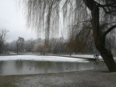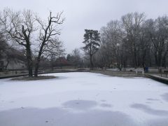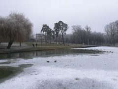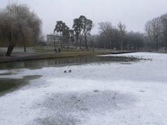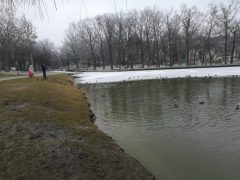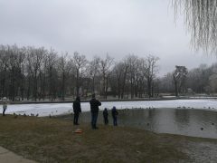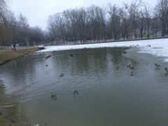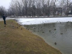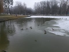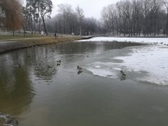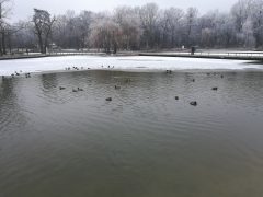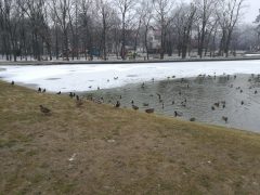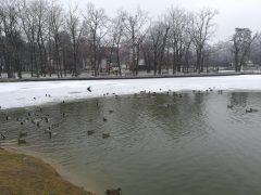 Jól érzik magukat a vadkacsák a Békás tónál, pedig már nincsenek benne békák. A félig befagyott tóban vígan úszkálnak és a Nagyerdőn sétálók közül többen is élelemmel látják el őket. Ebből a varjak is hasznot húznak.