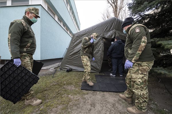 A koronavírus-járvány elleni védekezés keretében a budapesti Heim Pál Gyermekkórháznál is katonai sátrat építettek csütörtökön a kórházba érkező gyermekek előszűréséhez.