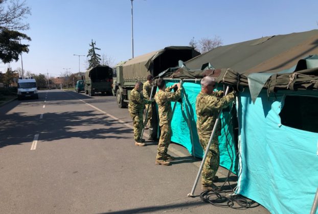 Két katonai sátrat állítottak fel az MH 5. Bocskai István Lövészdandár katonái április 5-én a debreceni Kenézy Gyula Egyetemi Kórháznál – tájékoztatott a Honvédelmi Minisztérium. A debreceni kórházba érkezők elővizsgálatát végzik majd a főbejárathoz, illetve a traumatológiai osztály bejáratához telepített katonai sátrakban, amit az alakulat tizenhárom katonája állított fel április 5-én. „A jelenlegi különleges jogrendi … Bővebben: Katonai sátrakat állítottak fel a Kenézy Kórháznál