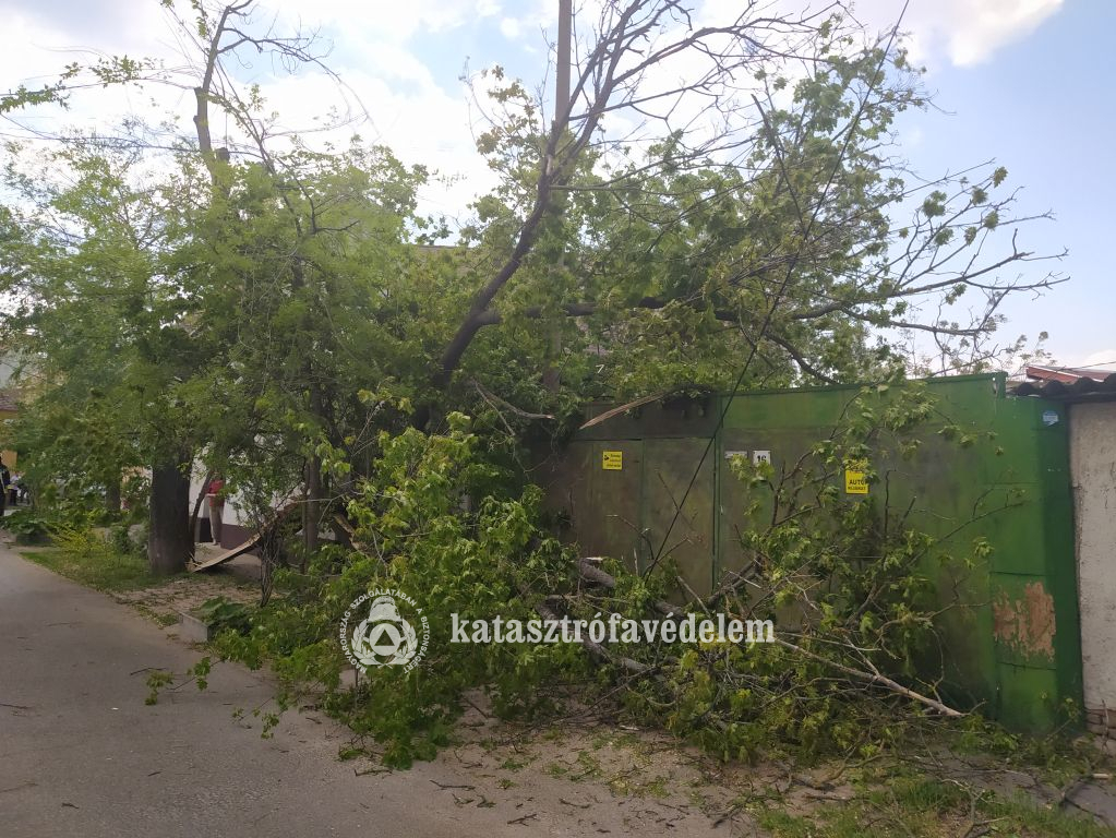 Sok kidőlt fa és lehasadt ág miatt riasztották a tűzoltókat hétfőn is. Reggel Debrecenben, a Lázár utcában egy húsz méteres platánfa dőlt meg. Az egység gépezetes tolólétrán át motoros láncfűrésszel kivágta a fát. Debrecenben, a Bekecs utcában egy faág tört le, majd fennakadt a magasban, a fogalmat veszélyeztette, ezért azt is eltávolították a tűzoltók. Délután a Petőfi téren egy magas fa borult a járdára, kézi erővel avatkoztak be. Az Akadémia utcában egy nyolc méteres juharfa korhadt el és a gyalogos forgalmat veszélyeztette, emiatt a debreceni hivatásos tűzoltók motoros láncfűrésszel kivágták a fát.