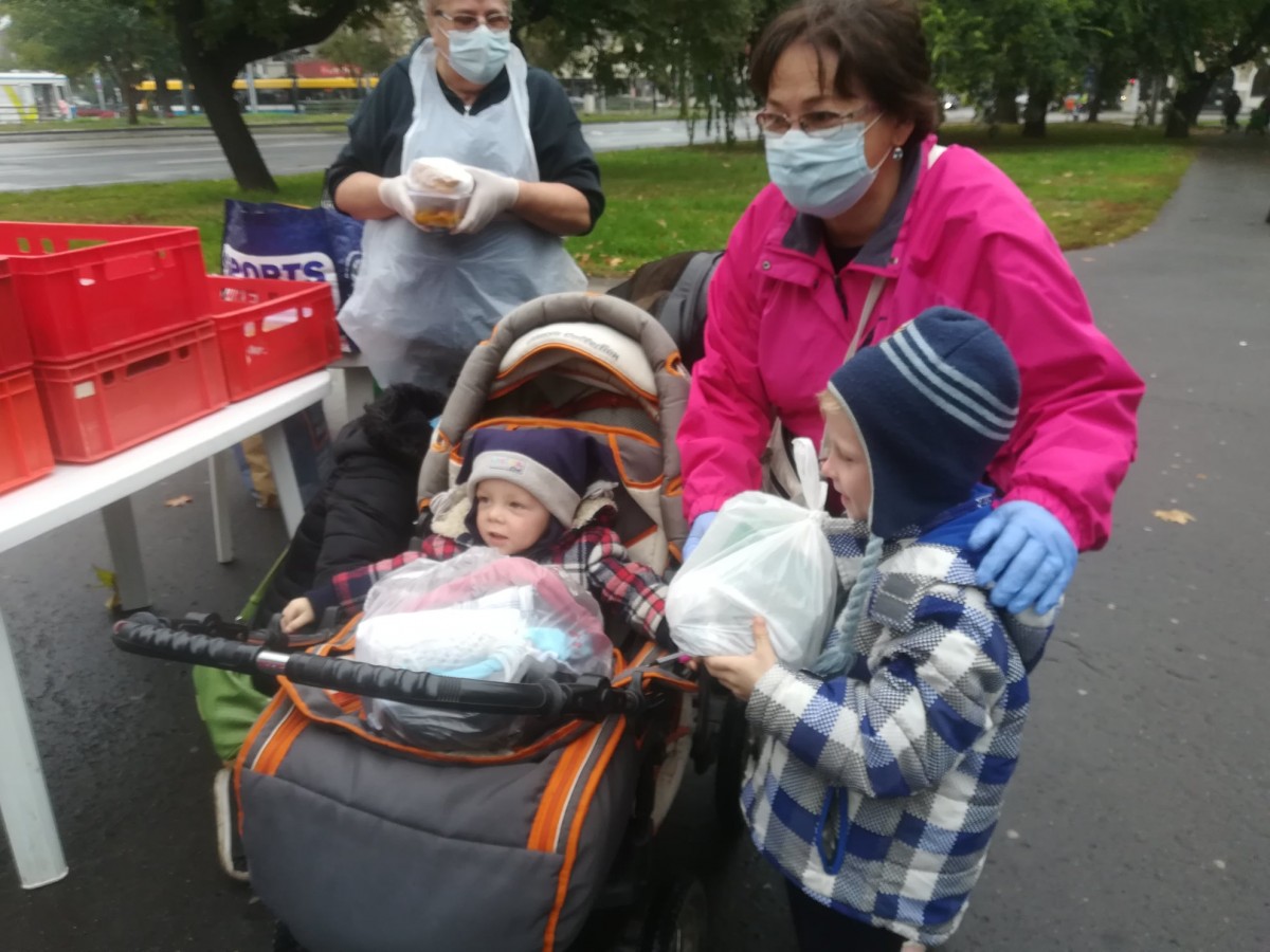 A koronavírus járvány miatt ügyeltünk a biztonsági rendszabályokra. A sorban állók mindegyike maszkot viselt, a távolságot is igyekeztek betartani, és mielőtt megkapták az ebédet, mindenkinek fertőtlenítettük a kezét. Mindenki nagyon fegyelmezett volt, néhányan nem hoztak maszkot, számukra adtunk a nálunk levőkből.