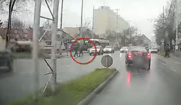 A külső sávban észlelte az ott közlekedő kocsi sofőrje a gyalogosok átkelési szándékát, ám a belső sávban érkező Peugeot sofőrje a gyalogátkelőre fittyet hányva száguldott volna át azon, ha a két gyalogos éppen nem akkor ért volna oda. Ráadás, hogy a külső sávban álló autók sem ébresztettek gyanút a rohanó sofőrben. A gyalogosok menekülési ösztönének és egy – a sofőr általi – hirtelen kikerülő manővernek volt köszönhető, hogy nem történt tragédia.