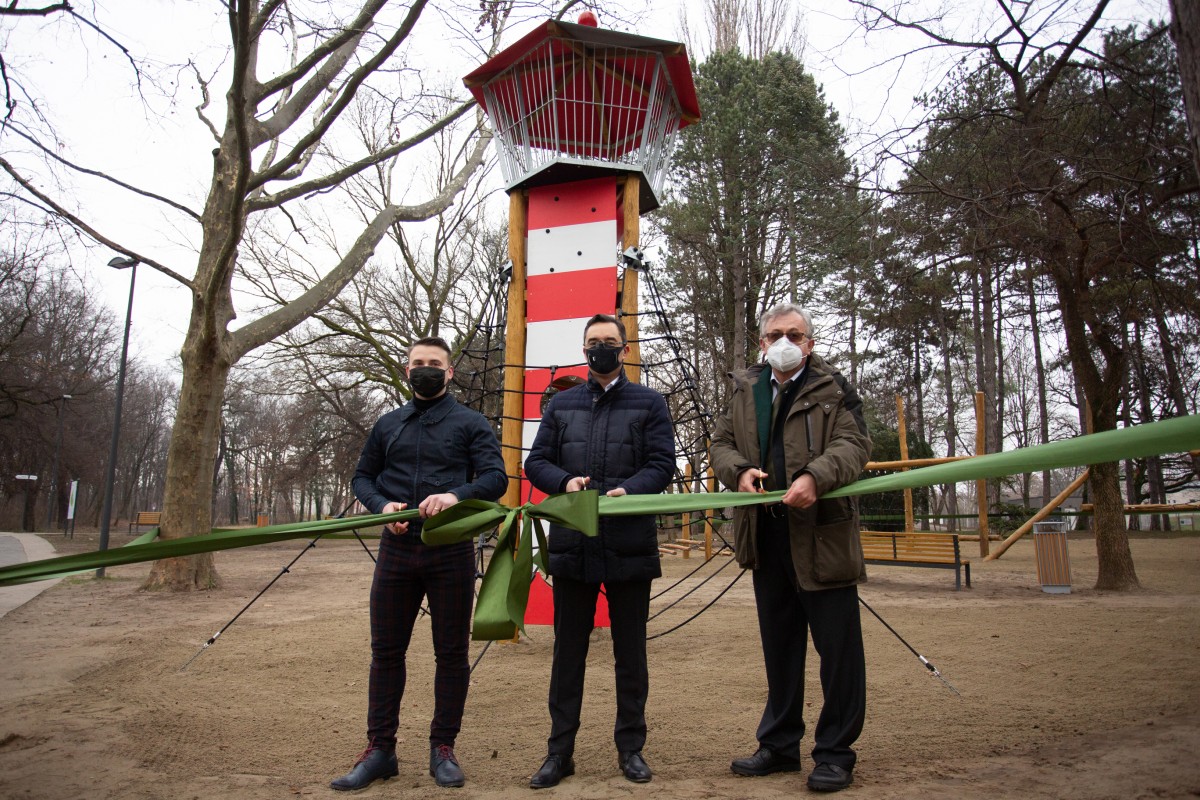 A város önkormányzata számára tett felajánlás keretében új játszóeszközöket telepített a Nyírerdő Zrt. a debreceni Békás-tó melletti játszótérre. A fejlesztésről sajtótájékoztató keretében számolt be Papp László, Debrecen polgármestere; Juhász Lajos, a Nyírerdő Zrt. műszaki vezérigazgató-helyettese és Majer Tamás, a terület önkormányzati képviselője 2021. január 8-án.