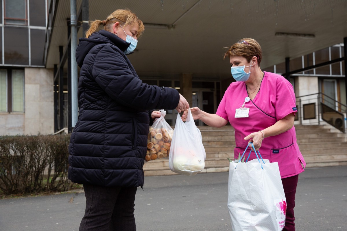 A Debreceni Karitatív Testület hagyományteremtő szándékkal elindított akciója keretében újabb sütemény- és gyümölcs-felajánlásokat juttatott el ma a Debreceni Egyetem Covid-ellátásban dolgozó munkatársai számára. Nagy szükségük van az egészségügyi dolgozóknak az odafigyelésre, mivel megfeszített és emberfeletti munkát végeznek.