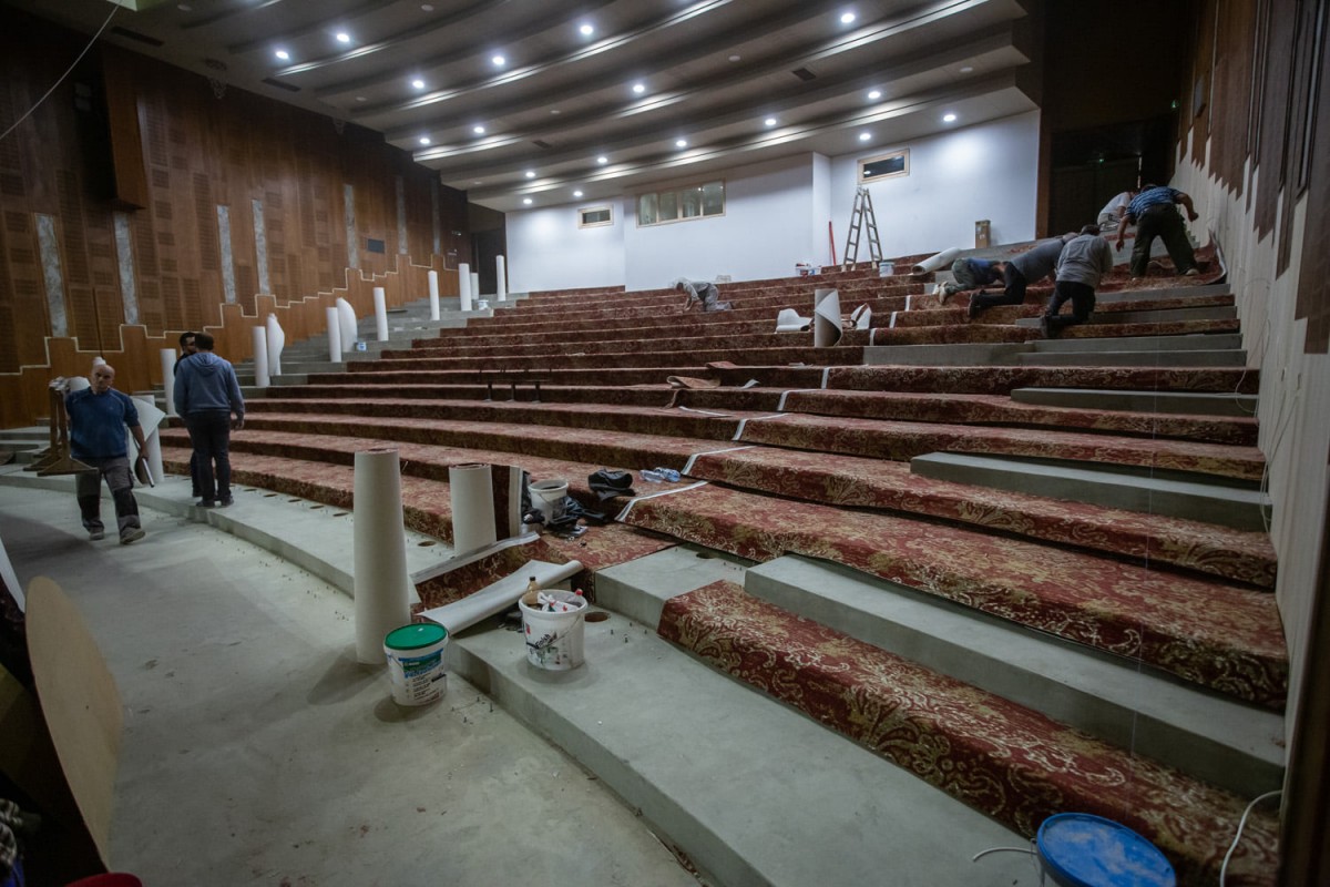 Nyolcvanmillió forint támogatást biztosított az Innovációs és Technológiai Minisztérium a munkálatokra: megújultak a burkolatok – többek között a fűtés burkolatának cseréje is megtörtént – új álmennyezetet, világítást és drapériát kapott a terem, az elektromos és gyengeáramú rendszert felújították, új hang-és kivetítő rendszert építettek, valamint 150 konferencia széket is beszereztek.