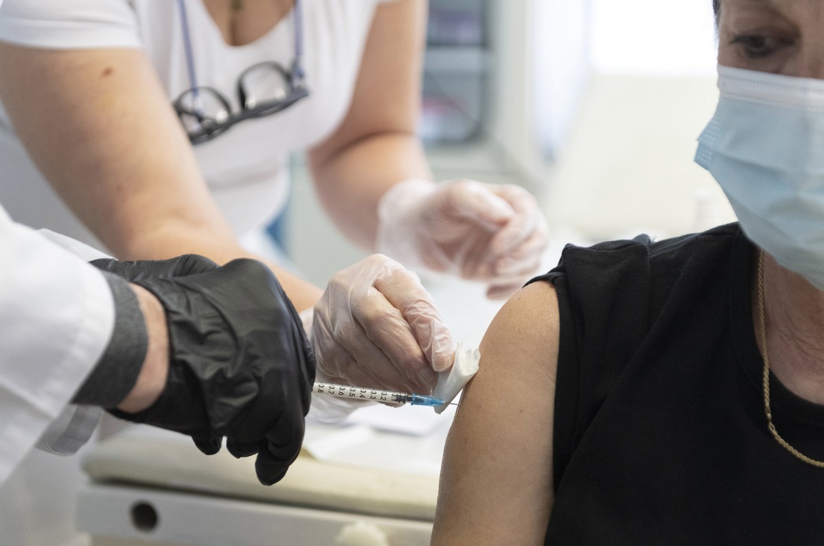 Ágoston Sándor főorvos beolt egy nőt az orosz fejlesztésű Szputnyik V koronavírus elleni oltóanyaggal (hivatalos nevén Gam-COVID-Vac) Nyíregyházán, a Jósa András Oktatókórházban 2021. február 20-án.