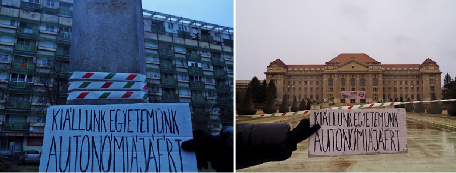 Hallgatók és oktatók szerte az országban a nemzeti trikolorral hívják fel a figyelmet arra, hogy az egyetemek függetlensége mindannyiunk közös ügye.