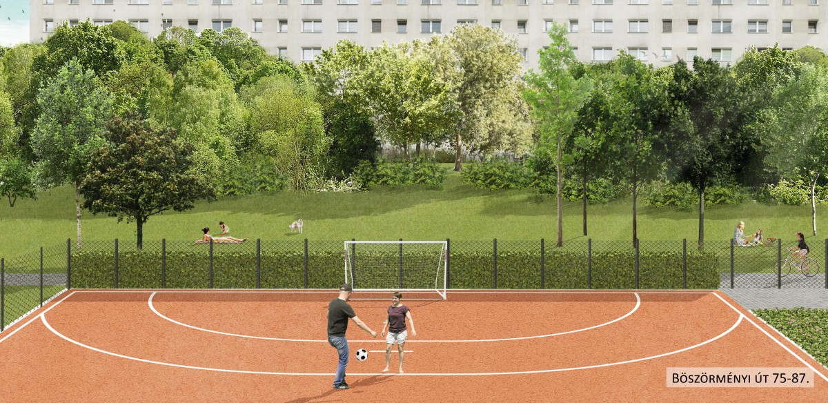 a Békessy Béla utca sarkán található sportpálya környezete