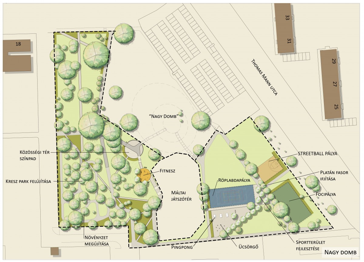 „A környéken játszóterek és sportpályák újulnak meg, és létrejön egy KRESZ-pálya is. Emellett a Nagy domb környéke, ami egy kedvelt rendezvényhelyszíne az újkertieknek, szintén teljes átalakuláson megy majd keresztül” – fogalmazott Korbeák György.