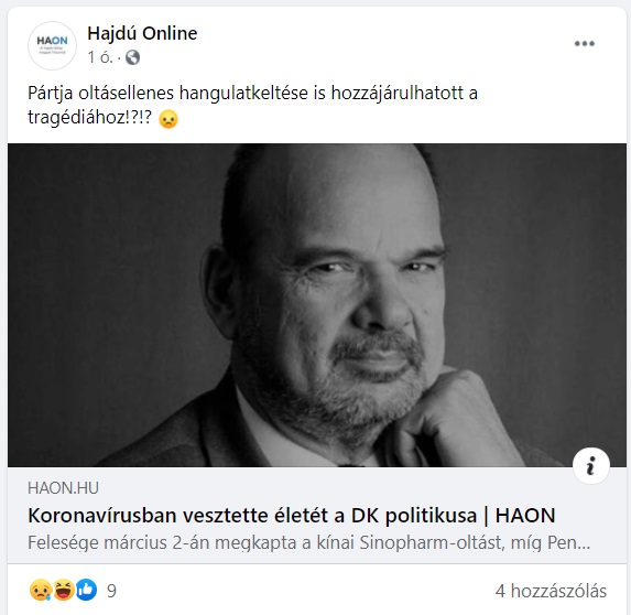 A Fidesz központjából vezérelt sajtótermékeknek most az lett kiadva, hogy a március 26-án, koronavírus-fertőzésben elhunyt Penz András DK-s képviselő halálát kössék össze az “oltásellenességgel”.