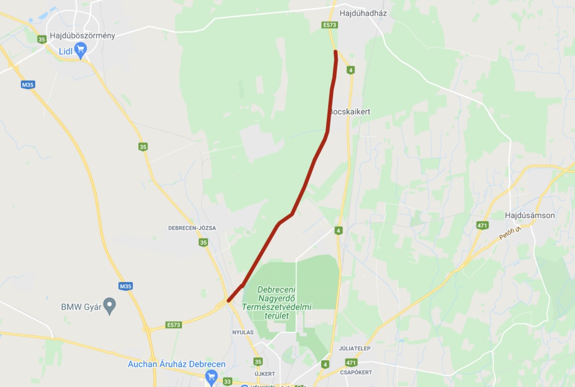 Az útlezárás miatt az M35-ös autópálya irányából a 35-ös számú főútra terelt járművek vezetői Debrecenben, a Böszörményi út, Füredi út, Bem tér, Nyíl utca útvonalon, az Árpád téren keresztül tudják folytatni útjukat a 4-es számú főútig. Másik lehetőség, Hajdúböszörmény központján keresztül a 3507-es számú úton a 4-es számú főútig.
