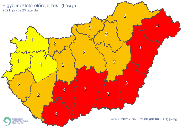 Szerdán Hajdú-Bihar megyében is piros figyelmeztetés lép életbe, mivel a napi középhőmérséklet elérheti a 29 fokot, a maximum pedig 37 fok körül várható: