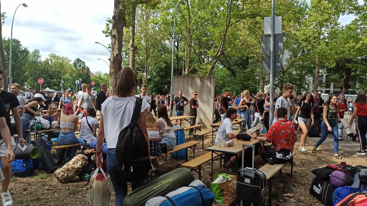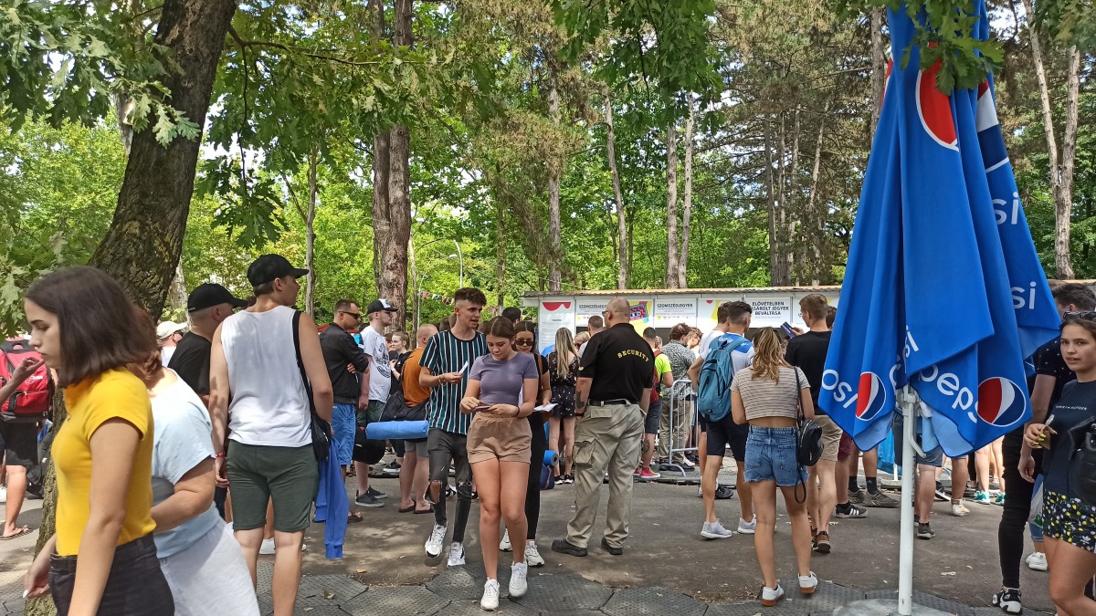 Este nyolc óra körül kilométeres sor áll a Campus Fesztivál bejárata előtt, ahol sokan még most veszik meg a jegyeiket. A kígyózó tömeg türelemmel vár a bejutásra.