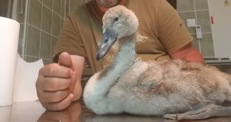 Amikor a horgászat végetért, a hazaút szintén érintette a helyszínt, ahonnan a hattyú család idő közben elúszott. Kivéve egyet, a legkisebbet. Ő még a parton gubbasztott. Legyengülhetett, kondíciója nem túl jó. A madárkórház igyekszik mindent megtenni, hogy megerősödjön a kis árva.