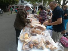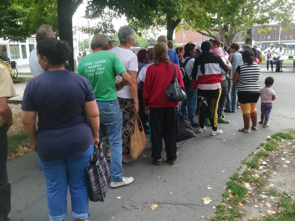 A járvány miatt a szabadtéri ételosztásaink szüneteltek, így nem tudtuk, vajon mennyien jönnek ki a Petőfi térre. Sajnos az ételért érkezők száma minden előzetes várakozásunkat felülmúlta.
