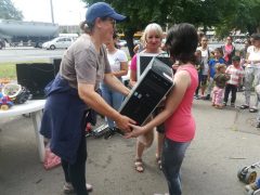 A tanév kezdetére tekintettel, tanszerekkel is vártuk a gyerekeket. Kisorsoltunk három asztali számítógépet, rollereket, és játékokat is. Az egyik kis családtól mikor megkérdeztük, hogy van – e tombola jegyük, kicsit szégyenkezve mondta az édesanya, “nincs nekünk arra pénzünk”. Mikor megtudták, hogy a Morzsapartin minden ingyenes, fülig érő mosollyal jöttek a tomboláért. Látni kellett volna az örömüket, mikor kiderült, a szerencse nekik kedvezett, egy számítógépet ők vihettek haza.