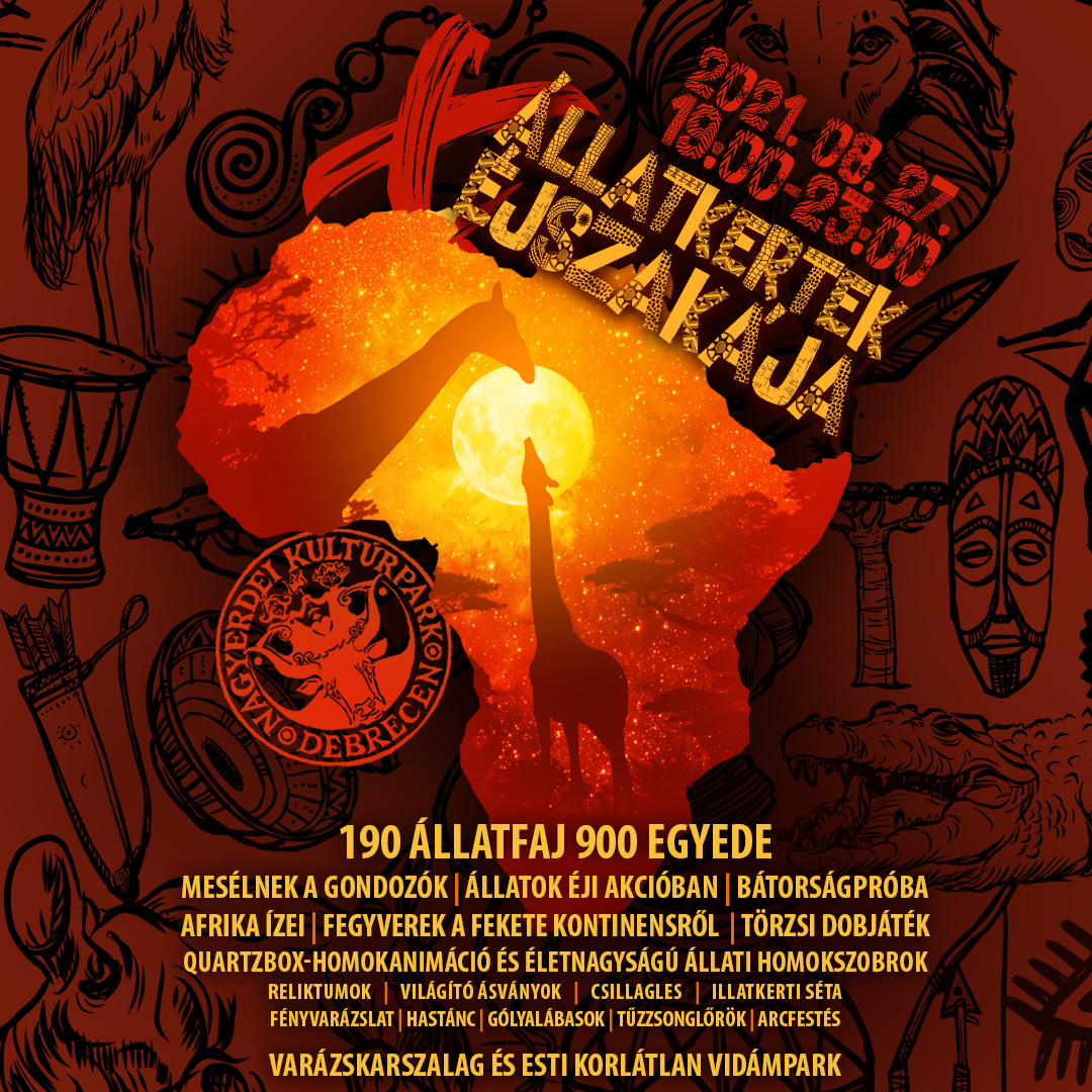 Augusztus utolsó péntekén, 19:00 és 23:00 között az ország első vidéki állatkertje és egyetlen vidámparkja immár 10. alkalommal rendezi meg az állatkertek éjszakáját, amelyen egyedülálló nyáresti programkavalkáddal várja a nagyközönséget. Az idei évben a szórakozni és kikapcsolódni vágyók Afrika sokszínű élővilágába és kultúrájába pillanthatnak be a kontinens fajaiban kiemelkedően gazdag intézmény és közreműködő partnerei szervezésében.