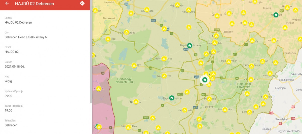 Hagyományos szavazási helyszínek az interaktív térképen: